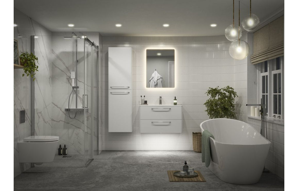 - Genesis 454mm Wall Hung 2 Door Tall Unit in White Gloss: Adds contemporary flair to any bathroom space.