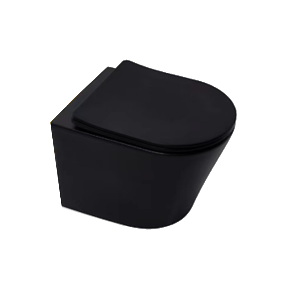 Matte Black D-Shape Closed Back Rimless Wall Hung Pan