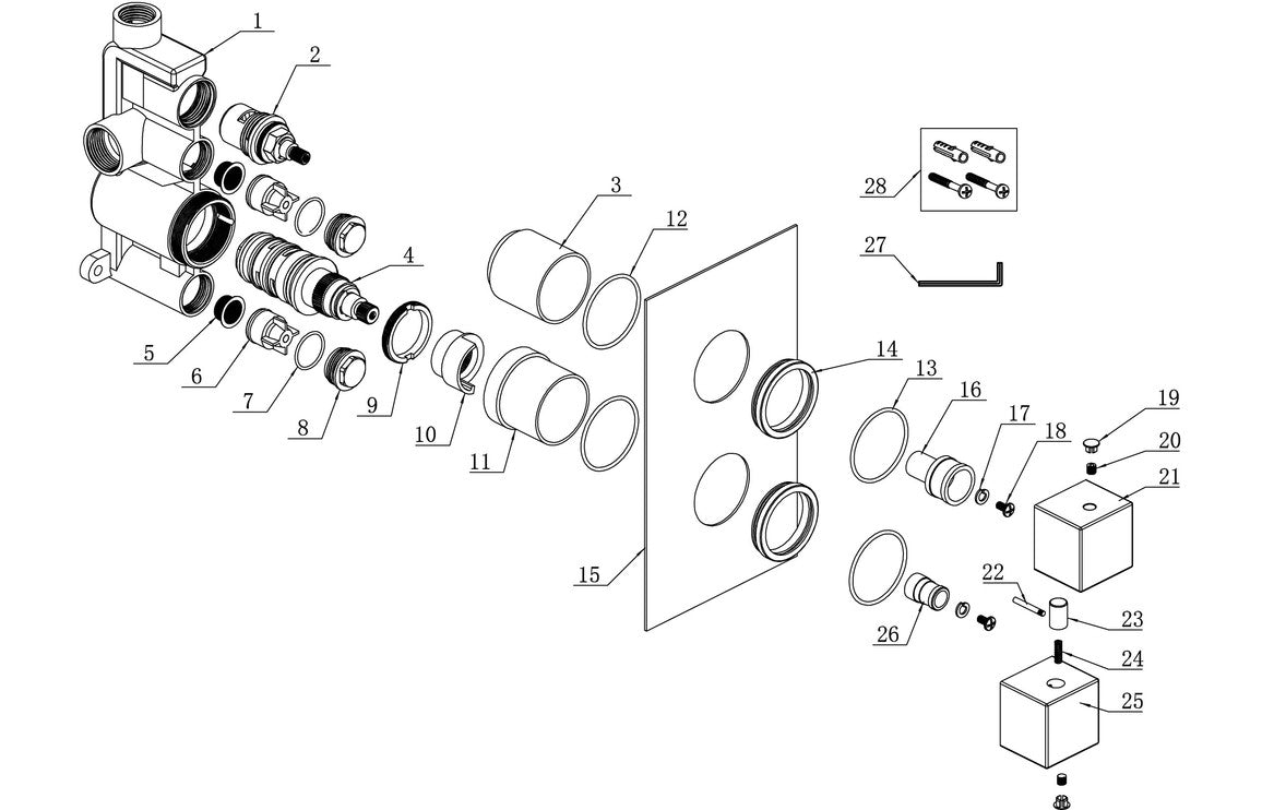 - Serves as a replacement for the DICM0162 Kuba Thermostatic Single Outlet Twin Shower Valve, now discontinued